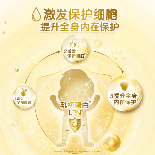給體質(zhì)較差的寶寶選奶粉也要關(guān)注成分。乳橋蛋白LPN,它是天然乳源OPN,是健康寶寶體內(nèi)含量更高的保護(hù)蛋白,非常親和。它非常珍貴,比很火的乳鐵蛋白還珍稀4倍。5萬公斤牛乳只有1公斤乳橋蛋白,妥妥的“貴族”成分。乳橋蛋白的結(jié)構(gòu)很特別,像一把保護(hù)力鑰匙,能激發(fā)寶寶自己的保護(hù)系統(tǒng),帶來雙向保護(hù);對(duì)內(nèi)加強(qiáng)自身保護(hù)力,體質(zhì)好了,還抵御外在傷害,身體更強(qiáng)壯。這么珍貴的營(yíng)養(yǎng),合生元派星一罐就有6倍含量,達(dá)到臨床水平高標(biāo)準(zhǔn)。