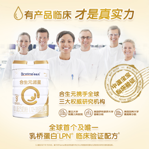 口碑好的奶粉排名中合生元派星蘊(yùn)含6倍乳橋蛋白LPN