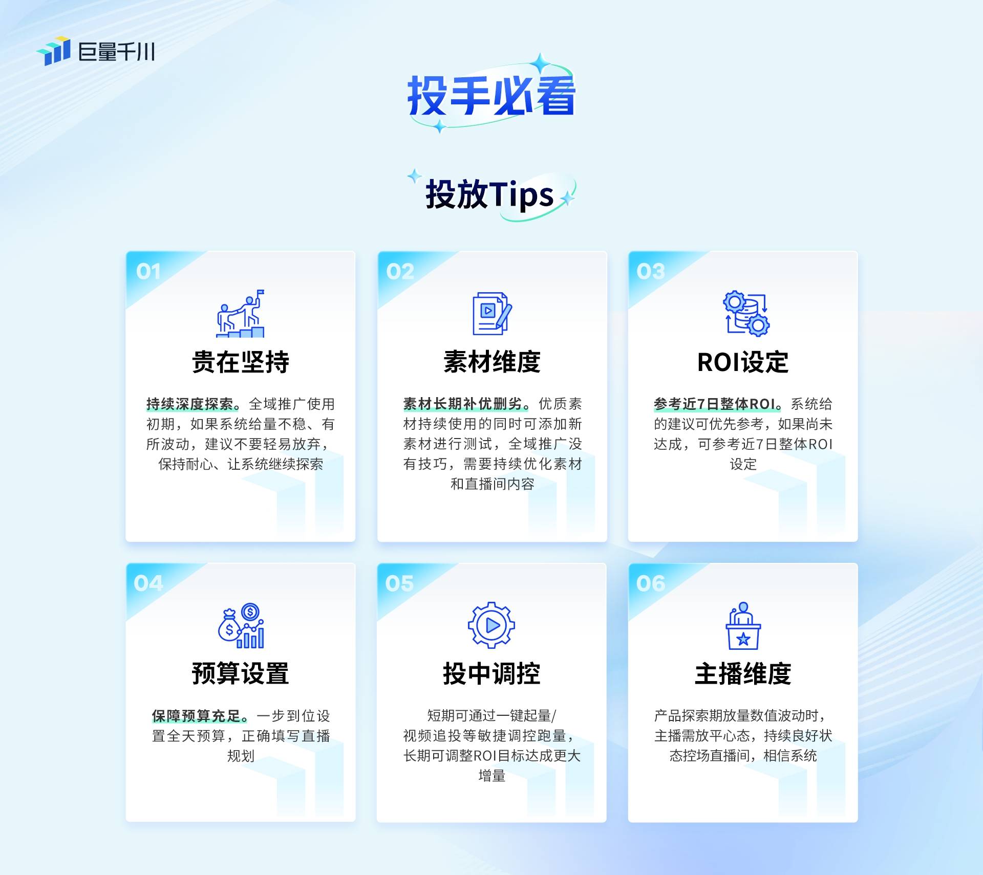 基于產品基礎信息和核心技術能力,為了商家能夠更清楚地進行實操,特送上超詳細的全域推廣使用tips,幫您解決產品使用上的疑惑與難題。