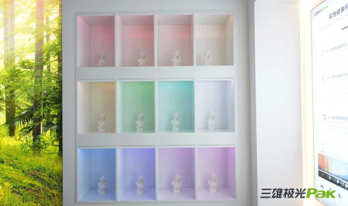 “光健康”是三雄極光倡導(dǎo)的核心理念之一,品牌體驗(yàn)館特設(shè)健康智能燈光展示區(qū),色溫墻直觀呈現(xiàn)出暖色溫和冷色溫的對(duì)比效果,專業(yè)圖解墻從理論的角度帶領(lǐng)大家理解不同光色對(duì)人身心影響,兩相結(jié)合將健康智能照明的價(jià)值體現(xiàn)得淋漓盡致。