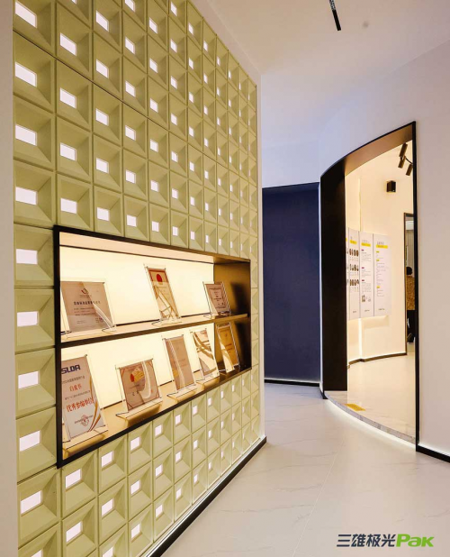 除了在光效體驗(yàn)墻區(qū)域設(shè)有產(chǎn)品墻,品牌體驗(yàn)館的產(chǎn)品展示區(qū)有序陳列各類型產(chǎn)品,有效地向大家傳達(dá)產(chǎn)品價(jià)值,實(shí)現(xiàn)品牌體驗(yàn)館的商業(yè)價(jià)值轉(zhuǎn)化。