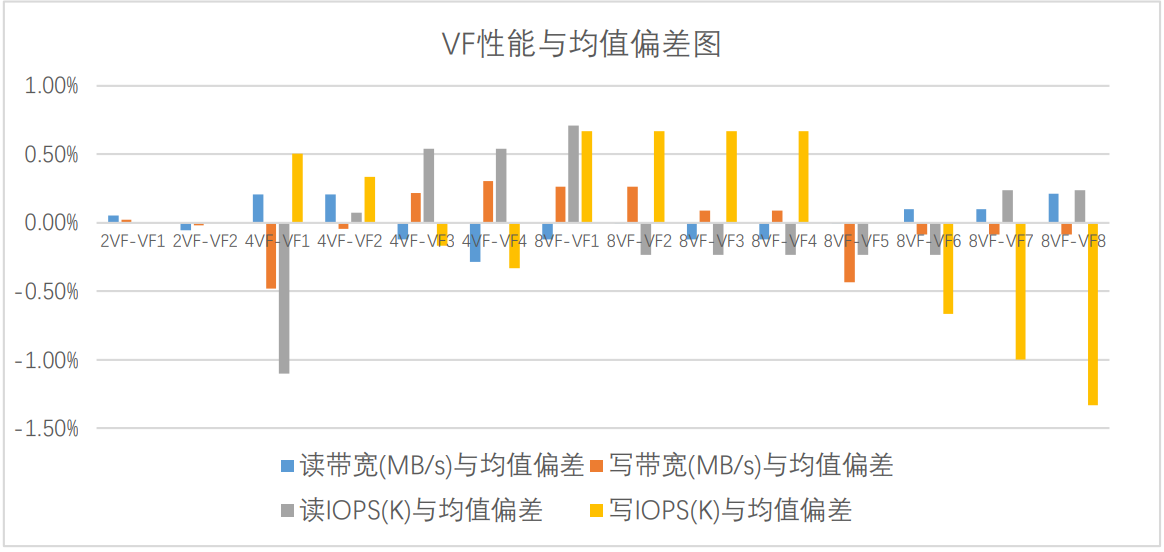 圖4:SR-IOV 功能下各 VF 與均值偏差圖