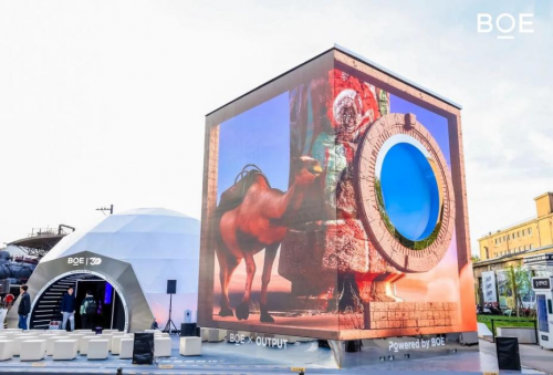 O_SPACE展館外部,一座高7.6米、寬6米、長(zhǎng)6米的巨型數(shù)字立方體吸引往來(lái)行人紛紛駐足打卡拍照,這是領(lǐng) 先數(shù)字內(nèi)容平臺(tái)OUTPUT為“你好,BOE”專(zhuān)屬定制的行業(yè)最 大尺寸MLED四面裸眼3D交互式數(shù)字藝術(shù)裝置,整體分為交互面和觀看面兩部分,交互面采用京東方新Mini LED技術(shù)搭建出獨(dú)特的“O”型,參觀者通過(guò)觸摸交互臺(tái)并轉(zhuǎn)動(dòng)超維空間內(nèi)的數(shù)字地球,就可以看到展現(xiàn)未來(lái)城市、智慧出行和智慧生活的《萬(wàn)象生活》,展現(xiàn)人類(lèi)對(duì)宇宙探索和向往的《奇觀秘境》,展現(xiàn)科技與生態(tài)和諧共生的《未來(lái)生態(tài)》;在觀看面,觀眾可以看到將敦煌文化中九色鹿、飛天等元素栩栩如生呈現(xiàn)的《古今無(wú)界》,連接夢(mèng)三國(guó)英雄與現(xiàn)實(shí)的《英雄夢(mèng)界》,以及展現(xiàn)京東方30周年歷程及對(duì)未來(lái)期望的《Powered by BOE》,通過(guò)變換不同的3D內(nèi)容及與觀眾的互動(dòng),呈現(xiàn)出一場(chǎng)場(chǎng)極具視覺(jué)沖擊的感官盛宴。