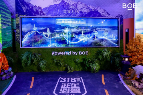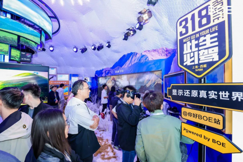 在工業(yè)復(fù)古與摩登時(shí)尚交匯融合的北京751火車(chē)頭廣場(chǎng),京東方通過(guò)8K裸眼3D、MLED、超大尺寸透明OLED等頂尖顯示技術(shù)在O_SPACE展館內(nèi)打造了一座虛實(shí)融合的沉浸式自然風(fēng)光影像館,館內(nèi)通過(guò)實(shí)景搭建與顯示科技相融合,將“此生必駕”的國(guó)民公路G318的四季之美創(chuàng)意呈現(xiàn),觀眾一進(jìn)入展區(qū)就會(huì)被林芝的花開(kāi)鳥(niǎo)鳴、羊湖的牧群山巒、珠峰的雪嶺碧空與布達(dá)拉宮的雄偉壯闊所震撼。