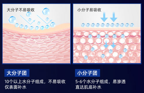可能有的姐妹不是很理解,什么是小分子團低氘水?簡單來說咱肌膚通道的大小有限、吸收能力也有限,只有小分子團低氘水,才能順暢穿過肌膚通道,進入肌膚深層補水,且小分子團低氘水一般只存在于高海拔無污染的冰川地帶,通常90Hz以下為小分子團水,而彌玥泉冰川溫泉水為46Hz,可以說非常的罕見。