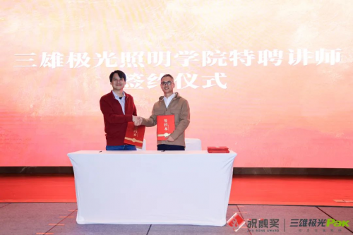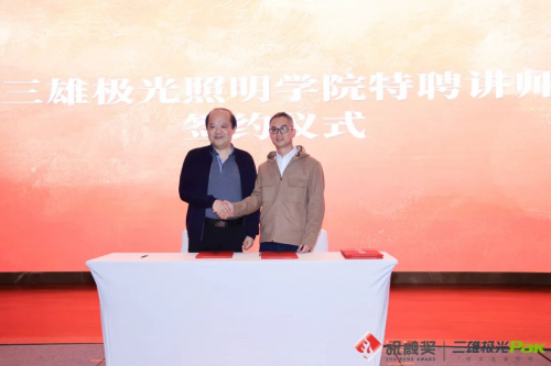 會議上,三雄極光品牌管理中心總監(jiān)李全與嘉賓們進行簽約儀式,隆重聘請彭海浪、蔣繆奕、施恒照、余顯開等嘉賓為特聘講師,將進一步擴大三雄極光照明學院實力,為打造學習實踐、圈層交流、產學設融合、跨界合作為一體的平臺體系提供專業(yè)力量。
