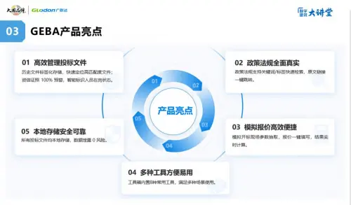 工欲善其事,必先利其器。作為一家數(shù)字化軟件企業(yè),在投標(biāo)領(lǐng)域,廣聯(lián)達(dá)致力于打造便捷化工具,讓投標(biāo)舒心、放心、安心、省心。借助本次賦能大會(huì),廣聯(lián)達(dá)重磅發(fā)布了投標(biāo)服務(wù)GEBA產(chǎn)品。產(chǎn)品圍繞施工企業(yè)投標(biāo)全過(guò)程,重點(diǎn)針對(duì)用戶尋找投標(biāo)底稿時(shí)間長(zhǎng)、資信文件管理成本高、政策法規(guī)查找慢、模擬報(bào)價(jià)效率低、投標(biāo)工具分散使用等問(wèn)題,提供文件庫(kù)、資信庫(kù)、知識(shí)庫(kù)、模擬報(bào)價(jià)、工具箱等五大功能,以一站式解決方案,提高企業(yè)投標(biāo)效率。