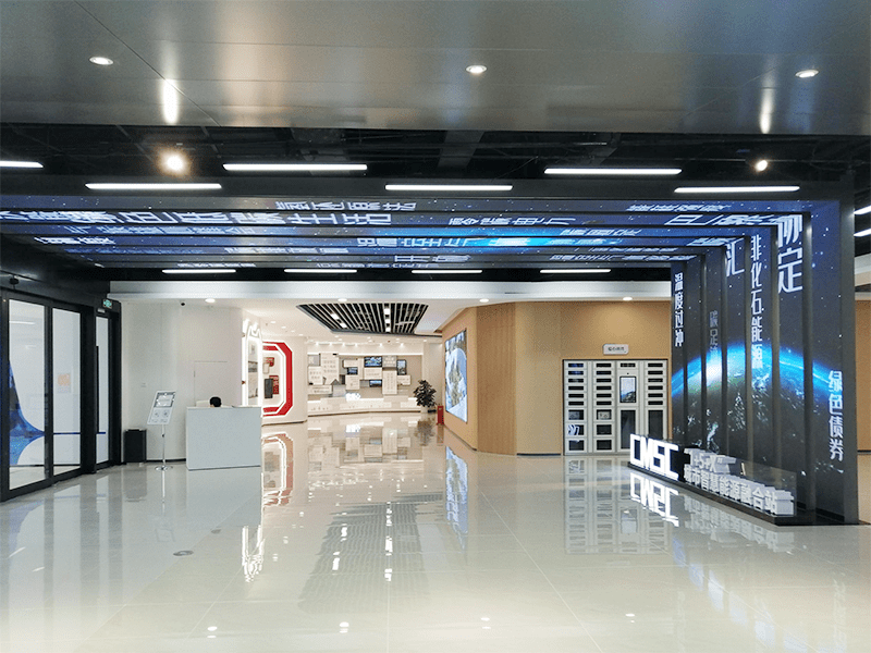 作為整廳同樣搶眼的一大板塊,位于“大國(guó)使命”信息瀑布流區(qū)域陳列著的異形大屏既是碳管理綜合服務(wù)中心形象的代言詞,也彰顯了“大國(guó)制造”的雄風(fēng)。