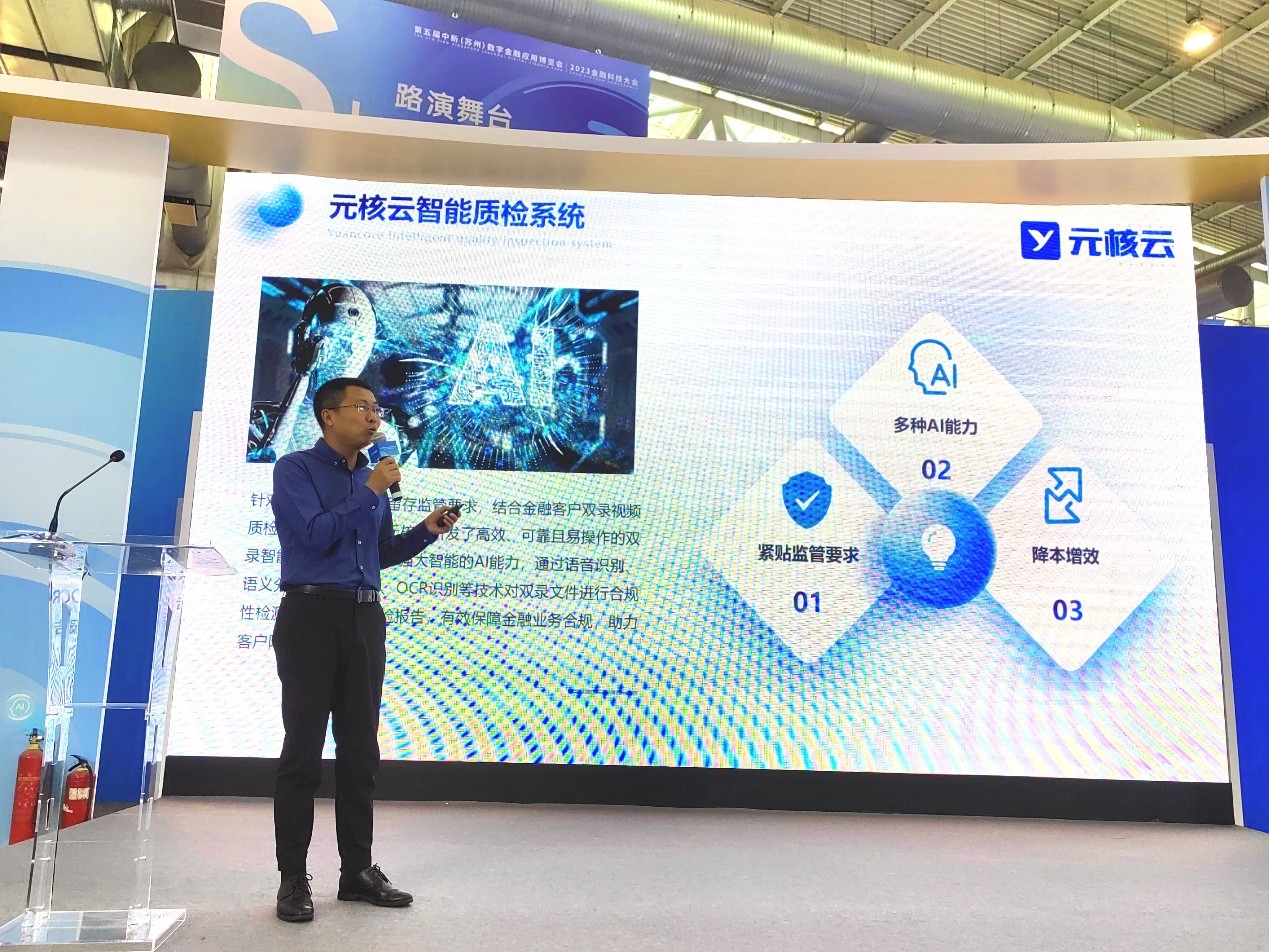 11月初,第五屆中新(蘇州)數(shù)字金融應(yīng)用博覽會(huì)|2023金融科技大會(huì)在蘇州國(guó)際博覽中心舉辦,圍繞金融科技發(fā)展熱點(diǎn)領(lǐng)域及金融行業(yè)信息科技領(lǐng)域重點(diǎn)工作,分享優(yōu)秀實(shí)踐經(jīng)驗(yàn),探討數(shù)字化轉(zhuǎn)型路徑與未來(lái)發(fā)展趨勢(shì)。元核云攜最新研發(fā)產(chǎn)品——元核云智能質(zhì)檢系統(tǒng)亮相此次大會(huì),并在會(huì)上發(fā)表重要演講,展示了AI技術(shù)在金融視頻質(zhì)檢場(chǎng)景的全新應(yīng)用成果。