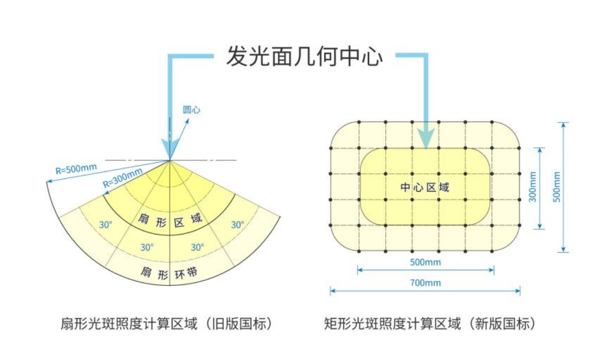 新版國標(biāo)測算范圍不再“分區(qū)”,總區(qū)域包含中心區(qū)域,照度均勻度要求更高!