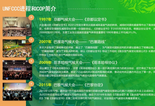 聯(lián)合國(guó)氣候變化會(huì)議是在《聯(lián)合國(guó)氣候變化框架公約》(UNFCCC)框架下每年舉行的會(huì)議。會(huì)議評(píng)估應(yīng)對(duì)氣候變化的進(jìn)展,并從20世紀(jì)90年代中期開(kāi)始討論《京都議定書(shū)》,確立發(fā)達(dá)國(guó)家減少溫室氣體排放的法律約束性義務(wù)。