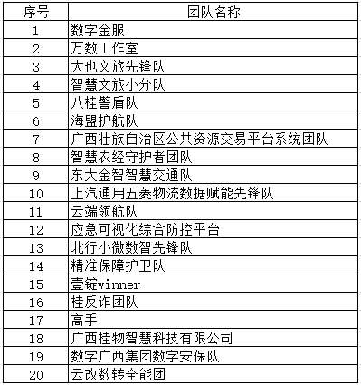 2023年廣西公共數(shù)據(jù)開放創(chuàng)新應(yīng)用大賽決賽的團隊入圍名單如下: