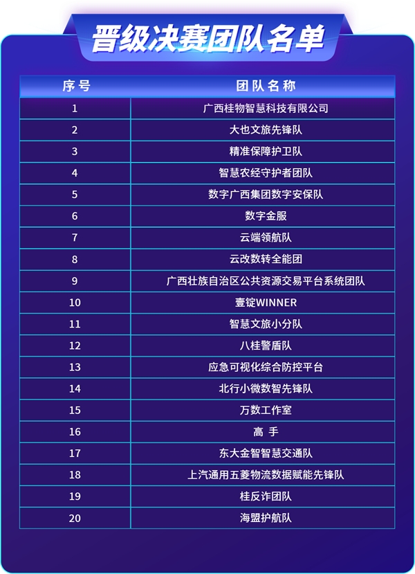 本次入圍決賽的項目具有創(chuàng)新性強、技術(shù)水平高的特點,不僅契合廣西數(shù)字產(chǎn)業(yè)發(fā)展的方向,而且能激發(fā)數(shù)據(jù)生產(chǎn)要素對經(jīng)濟社會的放大、疊加、倍增作用,并通過數(shù)字化提升治理能力。項目重點圍繞廣西“促發(fā)展、穩(wěn)民生、擴就業(yè)”方針,廣西地質(zhì)自然災害、事故災難、公共衛(wèi)生事件、社會安全事件等突發(fā)事件,廣西全面建成世界級旅游目的地,廣西貨運物、物流智能城市規(guī)劃、交通管理、殘障人士出行,北部灣港水上交通風險防范,北部灣港智慧運營服務水平,廣西智慧校園生態(tài)體系建設等方面設計,順應了廣西數(shù)字化發(fā)展浪潮,加快了廣西公共數(shù)據(jù)開放創(chuàng)新應用,是建設“數(shù)字中國”的內(nèi)在要求,是推進數(shù)字化改革的重要舉措,也是促進經(jīng)濟高質(zhì)量發(fā)展的必然選擇,相信這些項目在未來都能各自領(lǐng)域上為廣西的發(fā)展提供新的動力和支持。