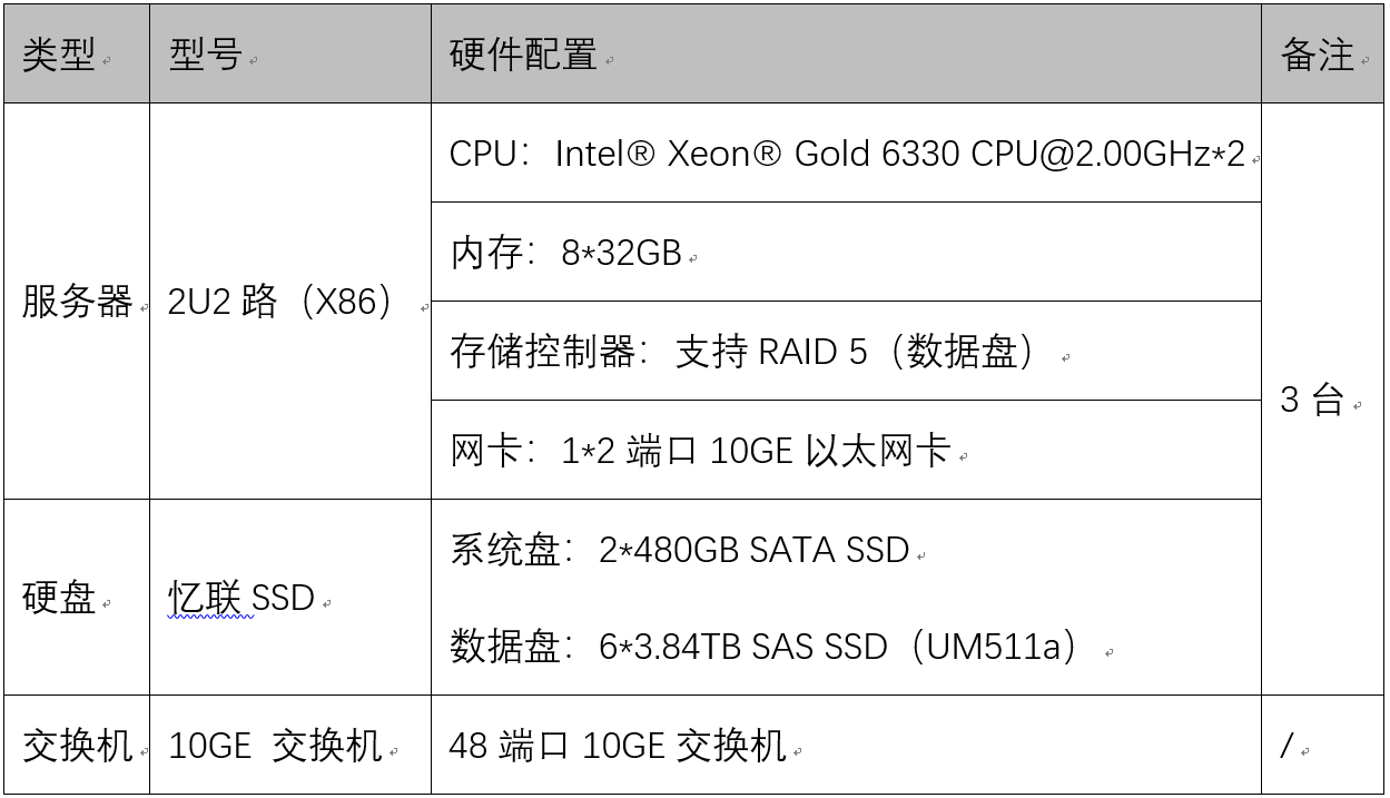 二、憶聯(lián)在GBase 8a MPP方案下的驗(yàn)證1、驗(yàn)證環(huán)境本次驗(yàn)證硬件配置