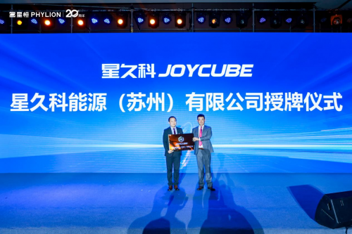慶典上,星恒電源董事長兼總裁馮笑向星恒電源副總裁兼星久科總裁李聲華授牌,代表著星恒控股子公司星久科能源(蘇州)有限公司正式成立。