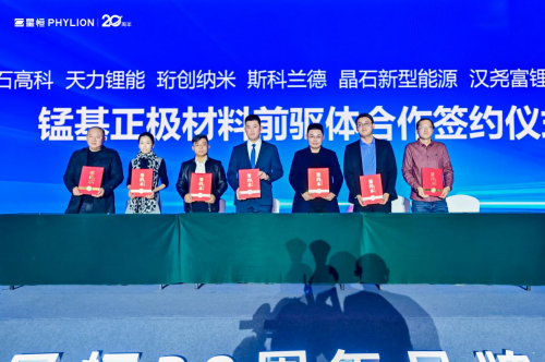 星恒青源和珩創(chuàng)納米、博石高科、天力鋰能、斯科蘭德、晶石新型能源、江西漢堯富鋰等企業(yè)舉行錳基正極材料前驅(qū)體合作簽約儀式,共同提高正極材料品質(zhì)與性能。