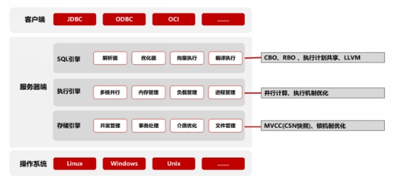 此次報告中優(yōu)異的性能表現(xiàn),得益于金倉數(shù)據庫系統(tǒng)架構及核心能力的支撐。人大金倉結合CBO、RBO、執(zhí)行計劃共享、LLVM、并行計算、執(zhí)行機制優(yōu)化、MVCC、鎖機制優(yōu)化等核心技術,對SQL引擎、執(zhí)行引擎和存儲引擎進行深度優(yōu)化,持續(xù)提升服務器端性能及效率,為用戶提供卓越穩(wěn)定的性能體驗。