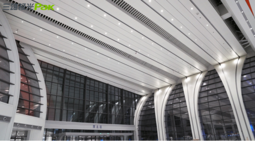 另一方面,白云站作為廣州重要地標(biāo)性建筑,需通過燈光使整體建筑在夜間更具標(biāo)志性,以此美化城市,激發(fā)文旅消費市場。三雄極光采用屋面亮化照明,對可觀看范圍內(nèi)的屋檐層,加裝LED筒燈,從而提高建筑在夜間的辨識度,并兼顧天窗下方的功能性照明,輔助室內(nèi)光效及照度,突出層次感。