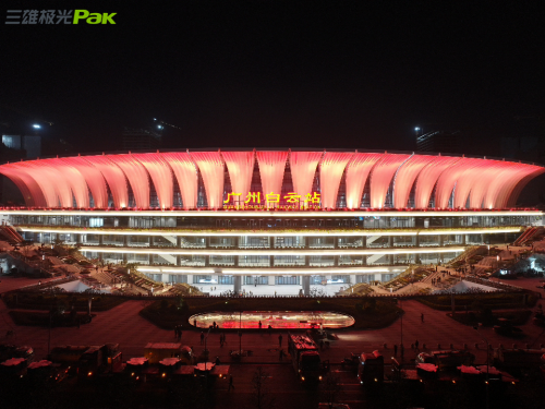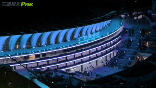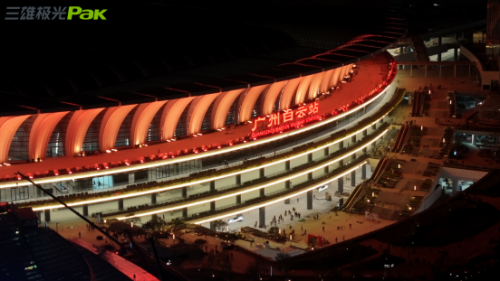 “云山珠水,盛世花開”,廣州白云站的站房設(shè)計以此為靈感,展現(xiàn)了獨具特色的嶺南文化元素。此次三雄極光作為廣州白云站的戶外整體照明解決方案服務(wù)商,為其量身打造了泛光照明整合提升方案,以展示廣州城市名片與綠色生態(tài)的設(shè)計理念為核心,構(gòu)筑標(biāo)志性城市形象。