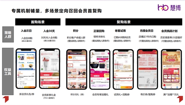 1、專屬機(jī)制鋪量,多場景定向召回會員首復(fù)購