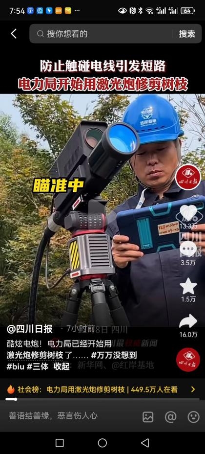 四川紅岸基地:全稱四川紅岸基地智能科技有限公司,由浙大校友陳國鑫領(lǐng)銜的團(tuán)隊,將需要耗資數(shù)十億美元的激光炮平民化,其最新一代激光清障儀,用在電力運維領(lǐng)域,遠(yuǎn)程切割輸電線路通道下方樹枝,幾十秒即可切斷20cm樹干,帶電作業(yè)零風(fēng)險,被稱為“電力手術(shù)刀”,產(chǎn)品一經(jīng)推出,在國家電網(wǎng)、南方電網(wǎng)、中廣核等單位已經(jīng)大量使用,創(chuàng)造的極大的經(jīng)濟(jì)效益和社會效益,得到包括新華社、人民日報、央視網(wǎng)、中國青年報、四川電視臺、華西都市報等在內(nèi)的主流媒體的報道點贊。其最新研發(fā)的遠(yuǎn)近一體激光破拆工具組,在消防領(lǐng)域也大展神威,為消防戰(zhàn)士提供了有力的工具;