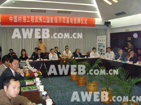 授牌儀式由武夷山市政府常務(wù)副市長金益滿主持,武夷山市胡書仁市長致歡迎辭,林嘉騋副會(huì)長、曹鴻鳴秘書長分別代表中國扶貧開發(fā)協(xié)會(huì)、中國致公黨中央致賀詞,“數(shù)字武夷”信息化領(lǐng)導(dǎo)小組辦公室劉德水主任就武夷山市新農(nóng)村信息化建設(shè)情況做了題為“政府推動(dòng)、特色服務(wù)、多元參與、商務(wù)運(yùn)營”的專題報(bào)告。與會(huì)領(lǐng)導(dǎo)及嘉賓還參觀了武夷山游客服務(wù)中心以及示范基地示范點(diǎn)--星村村信息服務(wù)站,并對中國村絡(luò)工程的試點(diǎn)工作提出了很多寶貴的意見和建議。