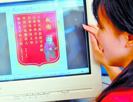 4月22日上午,一面電子錦旗發(fā)到了上街區(qū)政府網(wǎng)站的“區(qū)長信箱”里,發(fā)件人是北京市民張磊,他想以這種特殊的方式,感謝“區(qū)長信箱”為他的父親找到了失去聯(lián)系的老友。
