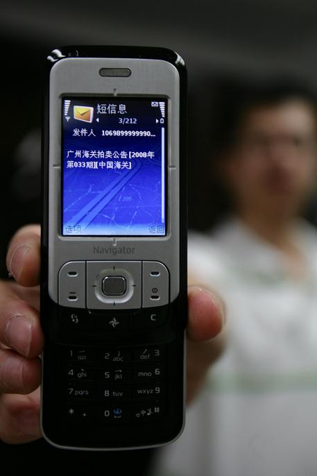 網(wǎng)友“tendays”是廣州海關(guān)互聯(lián)網(wǎng)站(http://guangzhou.customs.gov.cn)的注冊(cè)用戶。29日下午,他收到一條 “廣州海關(guān)拍賣公告”的手機(jī)提醒短信,提醒他最新一期廣州海關(guān)拍賣公告已經(jīng)公布在網(wǎng)站上,內(nèi)容已發(fā)至了他的電郵。這是廣州海關(guān)最新推出的一項(xiàng)關(guān)務(wù)公開便民措施。