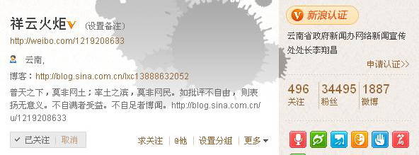 作為云南省新聞辦網(wǎng)絡(luò)新聞宣傳處處長的李翔昌,則更是在他的簡介中直白的寫道“如批評不自由,則表演無意義”。