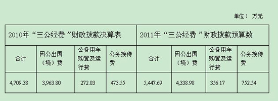 據了解,2011年貿促會“三公經費”財政撥款預算5447萬元。其中,因公出國(境)費4338萬元,公務用車購置及運行費356萬元,公務接待費752萬元。