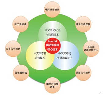 從目前信息無障礙應(yīng)用技術(shù)的發(fā)展情況來看,網(wǎng)站無障礙化的技術(shù)主要組成部分見左下圖: