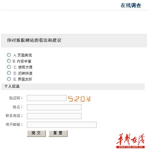 8月23日,華聲在線記者登陸肥東縣人民政府門戶網(wǎng),在該網(wǎng)站首頁的右下方,找到了網(wǎng)貼中所指的“你對新版網(wǎng)站的看法”民意調(diào)查,發(fā)現(xiàn)該調(diào)查的確只有5個選項,且都是表揚政府網(wǎng)做的好。