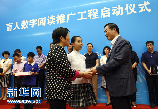 黨的十八大以來,以習(xí)近平同志為核心的黨中央對包括盲人在內(nèi)的殘疾人事業(yè)非常關(guān)心,強調(diào)要推動殘疾人共享我國經(jīng)濟社會發(fā)展成果。為貫徹落實習(xí)近平總書記重要指示精神,9月13日,由中宣部、財政部、文化部、國家新聞出版廣電總局、中國殘聯(lián)組織實施的“盲人數(shù)字閱讀推廣工程”在國家圖書館啟動。中共中央政治局委員、中央書記處書記、中宣部部長劉奇葆出席啟動儀式,并向圖書館和盲人教育機構(gòu)代表發(fā)放智能聽書機、盲用電腦等盲用閱讀設(shè)備。