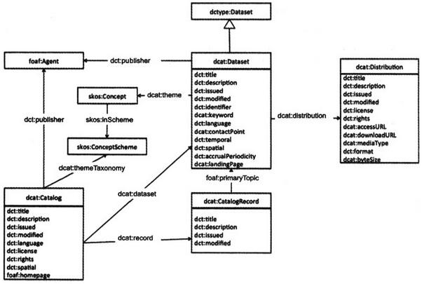 由蒂姆·伯納斯-李領(lǐng)導(dǎo)的W3C是政府?dāng)?shù)據(jù)開放運(yùn)動(dòng)的積極推動(dòng)者。W3C電子政務(wù)標(biāo)準(zhǔn)行動(dòng)計(jì)劃(eGov Activity)設(shè)有電子政務(wù)興趣小組(eGovernment Interest Group)和政府關(guān)聯(lián)數(shù)據(jù)工作組(Government Linked Data Working Group)。經(jīng)歷兩年的研制,2014年1月16日,政府關(guān)聯(lián)數(shù)據(jù)工作組最終發(fā)布了由愛(ài)爾蘭國(guó)立大學(xué)DERI(Digital Enterprise Research Institute)起草、電子政務(wù)興趣小組修改的政府開放數(shù)據(jù)元數(shù)據(jù)的正式推薦標(biāo)準(zhǔn)——DCAT(Data Catalog Vocabulary)。