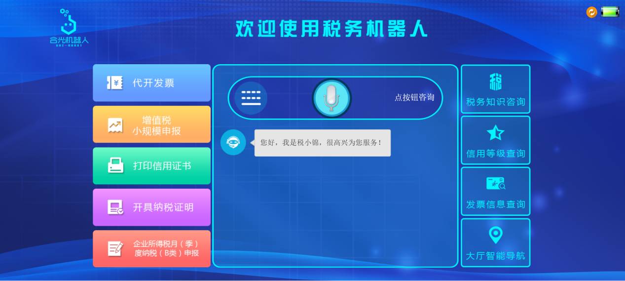 稅小錦是一款專門為涉稅事項(xiàng)提供智能化服務(wù)的稅務(wù)機(jī)器人,主要針對(duì)涉稅業(yè)務(wù)場(chǎng)景提供智能化、個(gè)性化服務(wù)。稅小錦采用全球領(lǐng)先的智能機(jī)器人技術(shù),可以通過(guò)自然語(yǔ)言對(duì)話方式來(lái)引導(dǎo)、答疑和辦理涉稅業(yè)務(wù),并且機(jī)器人展示大屏可以顯示個(gè)性化的可視化交互界面,方便用戶進(jìn)行查看具體業(yè)務(wù)內(nèi)容。除了對(duì)話功能之外,稅小錦還具有人臉識(shí)別、身份識(shí)別、發(fā)票打印、地圖導(dǎo)航等特殊功能,配合語(yǔ)音功能完成整個(gè)業(yè)務(wù)受理過(guò)程,實(shí)現(xiàn)智能化辦稅。