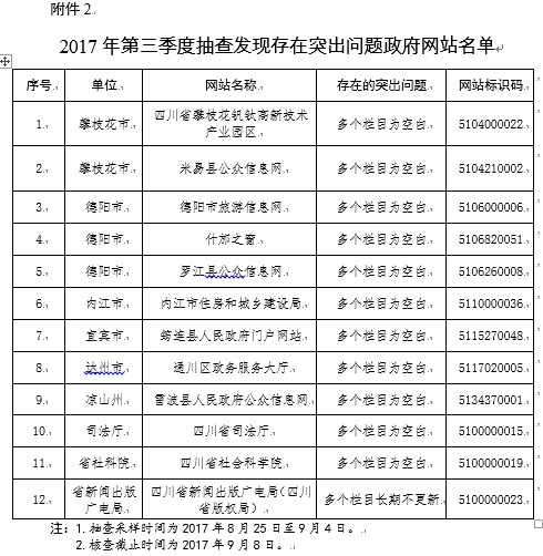 2.2017年第三季度抽查發(fā)現(xiàn)存在突出問(wèn)題政府網(wǎng)站名單