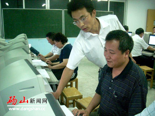 5月27日晚7:00,碭山中學一名教師在為縣委書記張祥根進行計算機網(wǎng)絡(luò)知識輔導。從5月27日起,由縣委宣傳部組織舉辦的縣四大班子領(lǐng)導,縣直各單位主要負責人,各鎮(zhèn)及開發(fā)區(qū)負責人電子政務(wù)培訓班,擬利用每晚兩個小時的時間,通過一個月的學習培訓,使碭山縣電子政務(wù)得到有效推動。全縣100多名正科級以上干部將通過對計算機辦公自動化、網(wǎng)絡(luò)基礎(chǔ)知識和應(yīng)用、計算機安全與管理及其實際運用操作,強化運用信息技術(shù)與資源的能力,提高推進電子政務(wù)工作的水平和實際應(yīng)用能力。