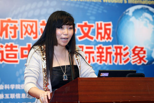 上海飛來飛去多媒體創(chuàng)意公司董事長楊青青以《政府網(wǎng)站的經(jīng)濟服務功能》為題做了現(xiàn)場發(fā)言,對外文網(wǎng)站的使用效果與改進建議提出了自己的看法。她認為,網(wǎng)站需更明確并強化自身的地位,建立信任感和親切感,在飛速發(fā)展的信息化時代,上網(wǎng)其實不是個人活動,而是一項社會活動。她特別提出了區(qū)域門戶網(wǎng)站的互動功能與跨區(qū)域合作,主張把區(qū)域門戶網(wǎng)站做成社區(qū)資源,做成家庭生活的一部分。
