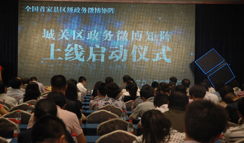 上線啟動儀式最后蘭州市委宣傳部部長周麗寧、城關(guān)區(qū)區(qū)長張國一與8名網(wǎng)絡(luò)監(jiān)督大師啟動微博矩陣,城關(guān)區(qū)政務(wù)微博矩陣正式開通上線。