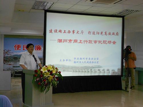 市委副書記蔡澤輝,市委常委、常務副市長方利旭,市委常委、市委秘書長張帆,市政協(xié)副主席肖裕欽,市紀委副書記、市監(jiān)察局局長林躍,市政府秘書長丁應亮和市委、市政府有關副秘書長等出席此次現(xiàn)場會。各縣(區(qū))委書記或縣(區(qū))長(管委會主任);各行政審批職能部門的主要領導;潮州港經(jīng)濟開發(fā)區(qū)管委會、電信潮州分公司、市行政服務、市委機要局、市信息管理辦公室的主要領導;企業(yè)及個人代表也參加網(wǎng)上行政審批系統(tǒng)的推廣現(xiàn)場會。