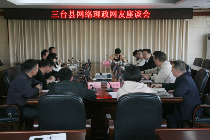 座談會上三臺縣縣委常委、宣傳部長何曉濤、縣群工局負(fù)責(zé)人先后向來自三臺在線、百度三臺吧等網(wǎng)站、論壇的網(wǎng)友代表介紹了三臺縣的網(wǎng)絡(luò)問政和網(wǎng)上信訪工作情況。