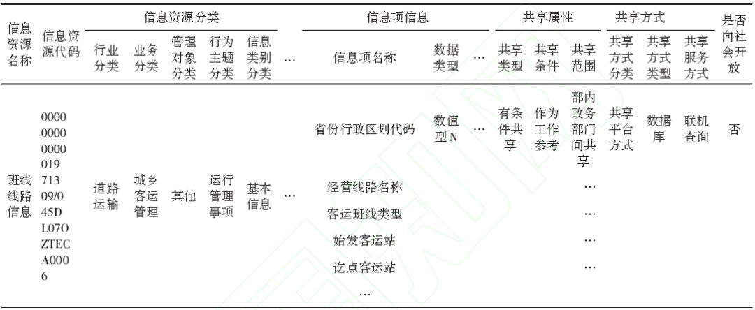 表5 信息資源目錄示例 (部分內(nèi)容省略)