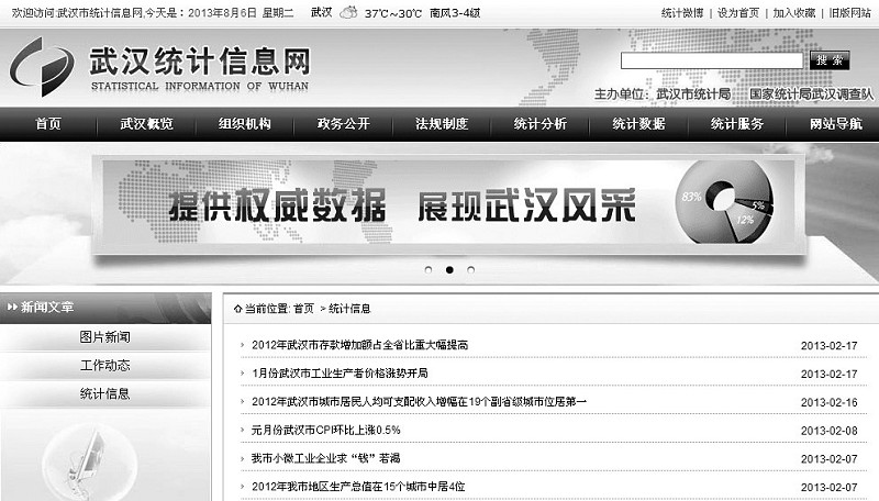 武漢市統(tǒng)計(jì)局網(wǎng)站截屏