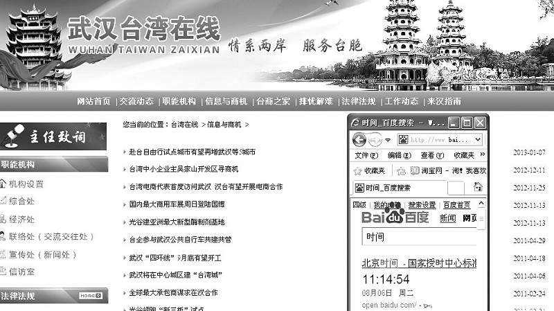武漢市臺(tái)辦的網(wǎng)站“武漢臺(tái)灣在線”首頁(yè)上的“信息與商機(jī)”欄目中,最新的內(nèi)容為“赴臺(tái)自由行試點(diǎn)城市有望再增武漢等5城市”,錄入時(shí)間為今年1月7日;“臺(tái)商之家”欄目的最新錄入時(shí)間為2012年7月13日,內(nèi)容是武漢臺(tái)資企業(yè)協(xié)會(huì)舉行換屆大會(huì),而第二條的更新時(shí)間為2011年2月16日。這意味著,臺(tái)商之家欄目,一年只更新了一條。