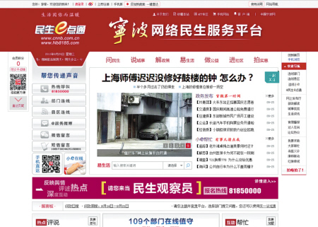 請(qǐng)您鍵入www.nb8185.com、nb8185.cnnb.com.cn,或在手機(jī)上鍵入3g.nb8185.com,展示在您眼前的是寧波網(wǎng)絡(luò)民生服務(wù)平臺(tái)———寧波民生e點(diǎn)通。在這里,您很容易就能在頁(yè)面的上端找到“問民生”窗口。點(diǎn)擊進(jìn)入后,您會(huì)看到,這里是與您有著同樣需求的網(wǎng)友的集結(jié)地,他們正在向全市109個(gè)部門的網(wǎng)絡(luò)發(fā)言人提問、質(zhì)疑、訴說,問和答的內(nèi)容,正在實(shí)時(shí)播報(bào)。