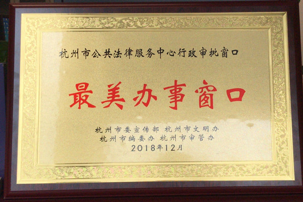 近日,杭州市公共法律服務(wù)中心“行政審批”窗口被評(píng)為杭州市助力“最多跑一次”改革“最美辦事窗口”。
