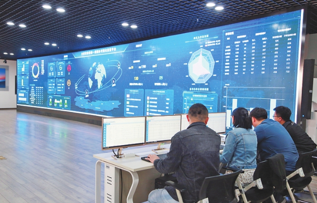 大慶市行政服務中心大廳管理人員監(jiān)控全市政務服務協(xié)同情況。