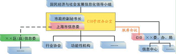 其中,國民經(jīng)濟(jì)與社會發(fā)展信息化領(lǐng)導(dǎo)小組是電子政務(wù)建設(shè)的最高決策機(jī)構(gòu)。上海市信息委則是具體的執(zhí)行機(jī)構(gòu),其主任就是政府首席信息官,同時,它與市政府一把手共同組成全市的CIO管理辦公室,負(fù)責(zé)對各委辦局電子政務(wù)工作的管理及指導(dǎo)。各委辦局的首席信息官擔(dān)任具體執(zhí)行工作,并與CIO管理辦公室定期通過聯(lián)席會議,進(jìn)行情況的溝通。