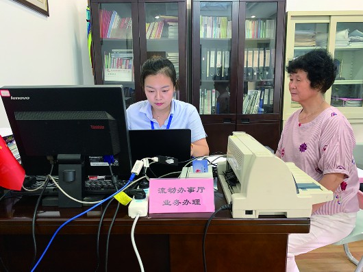 記者在愛里舍小區(qū)的辦理現(xiàn)場看到,一臺電腦、一個讀卡器、和一臺打印機是“流動辦事廳”的所有辦公用具。居民只需攜帶相應(yīng)證件,便可辦理敬老卡申領(lǐng)、租賃備案、新版社??ㄉ觐I(lǐng)、失業(yè)補助金申請等8個條線、34項個人業(yè)務(wù)。