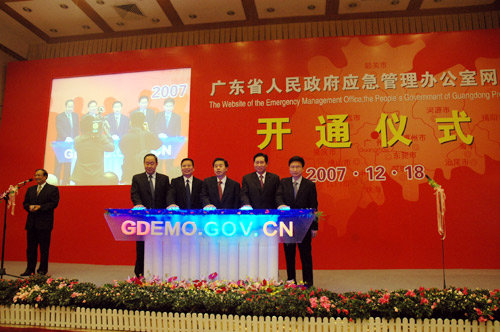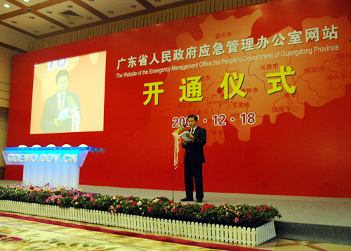 國(guó)內(nèi)首個(gè)應(yīng)急管理專門(mén)網(wǎng)站——廣東省人民政府應(yīng)急管理辦公室網(wǎng)站今日(18日)正式開(kāi)通。省應(yīng)急委主任、省委副書(shū)記、省長(zhǎng)黃華華,省應(yīng)急委副主任、省委副書(shū)記、省政法委書(shū)記劉玉浦,省應(yīng)急委副主任、省委常委、省公安廳廳長(zhǎng)梁偉發(fā),常務(wù)副省長(zhǎng)鐘陽(yáng)勝,省應(yīng)急委副主任、副省長(zhǎng)李容根,副省長(zhǎng)佟星出席網(wǎng)站開(kāi)通儀式。黃華華省長(zhǎng)在開(kāi)通儀式上作了重要講話。省政府秘書(shū)長(zhǎng)、辦公廳主任徐尚武介紹了省政府應(yīng)急辦網(wǎng)站建設(shè)情況。
